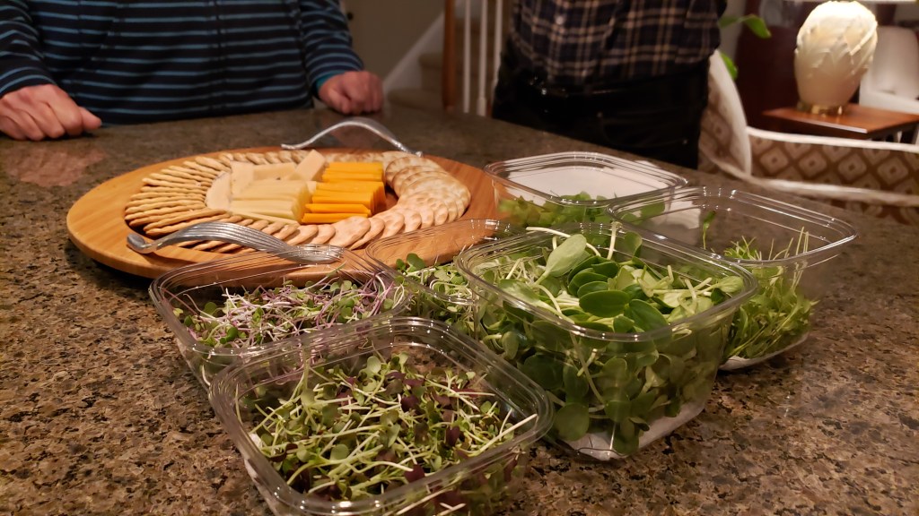 It’s just snacking done right! Adding microgreens like Spicy Mustard, Cantaloupe, Arugula, and/or Pac Choi (Chinese cabbage) to your cheese and meat boards will change your way of appetizers!