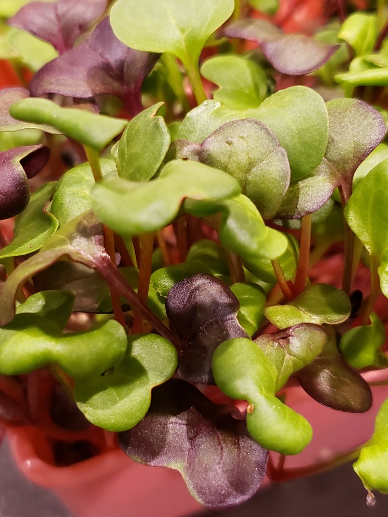 Radish microgreens are one of the most nutrient compact microgreens. It contains a variety of vitamins such as vitamins A, B, C, E, and K and is also rich in essential amino acids. This spicy microgreen has a great amount of chlorophyll, carotenes, calcium, fiber, folic acid, iron, magnesium, pantothenic acid (vitamin B5), potassium, and zink. Radish microgreens have properties that are extremely essential to human life, and they also help to both improve energy levels and the body’s ability to eliminate toxins. This beautiful microgreen goes well to enhance the flavors and the colors in meals as a topping, or an addition to salads and even smoothies